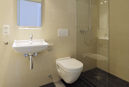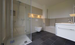 Im Bereich der Badsanierung übernehmen wir die Gewerke Putz, Trockenbau, Mauern, Estrich sowie 'Fliesen, Platten-Mosaik'. Auf Wunsch organisieren wir auch die Gewerke Elektro und Heizung/Sanitär. Foto: Architekt M. Jochum